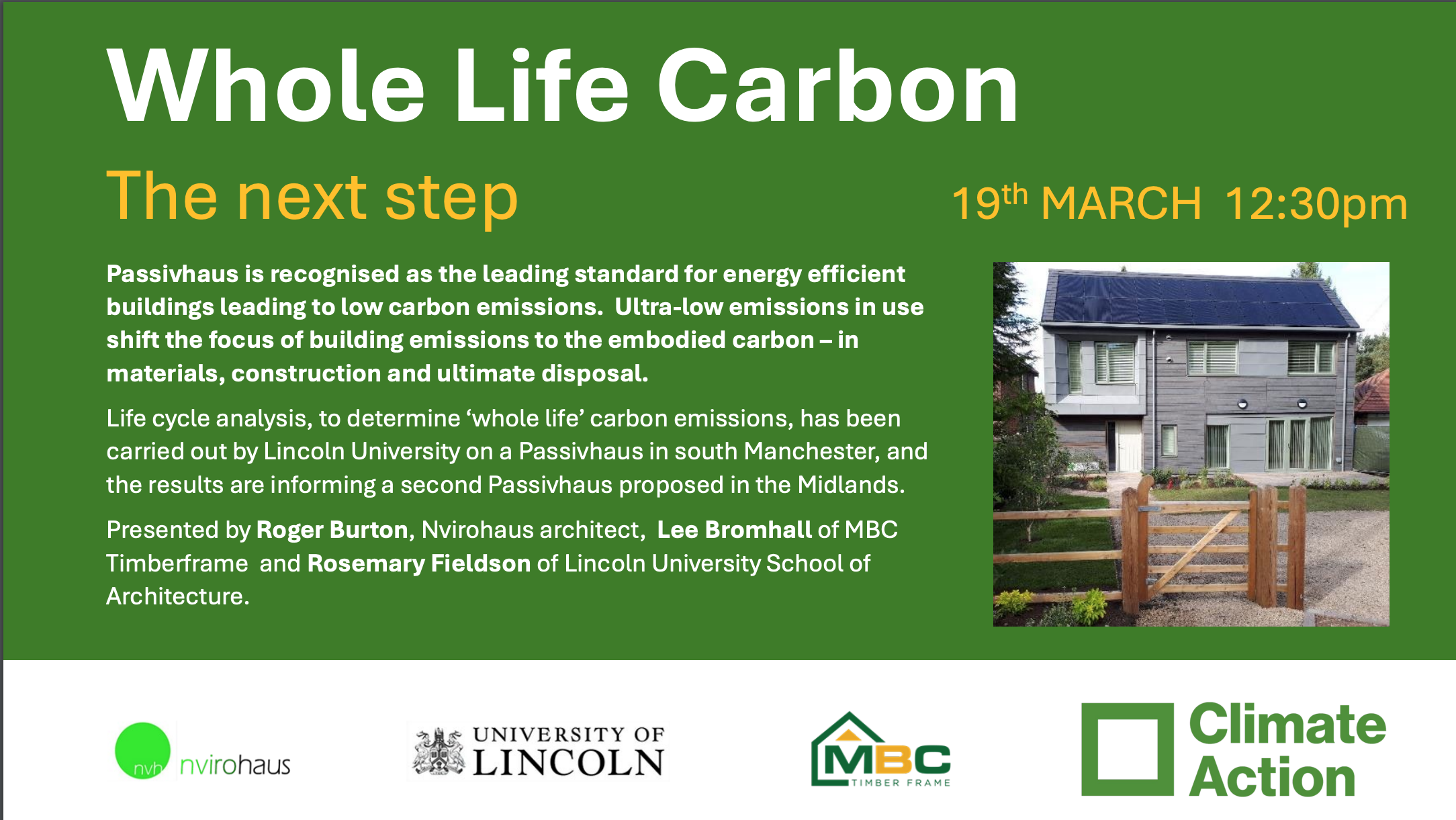 Presented by Roger Burton, Nvirohaus architect, Lee Bromhall of MBC Timberframe and Rosemary Fieldson of Lincoln University School of Architecture.